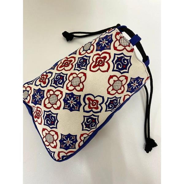 アイヌ帆布 通しマチ巾着 アイヌ文様 アイヌ紋様 グッズ 鞄 ポーチ 小物入れ